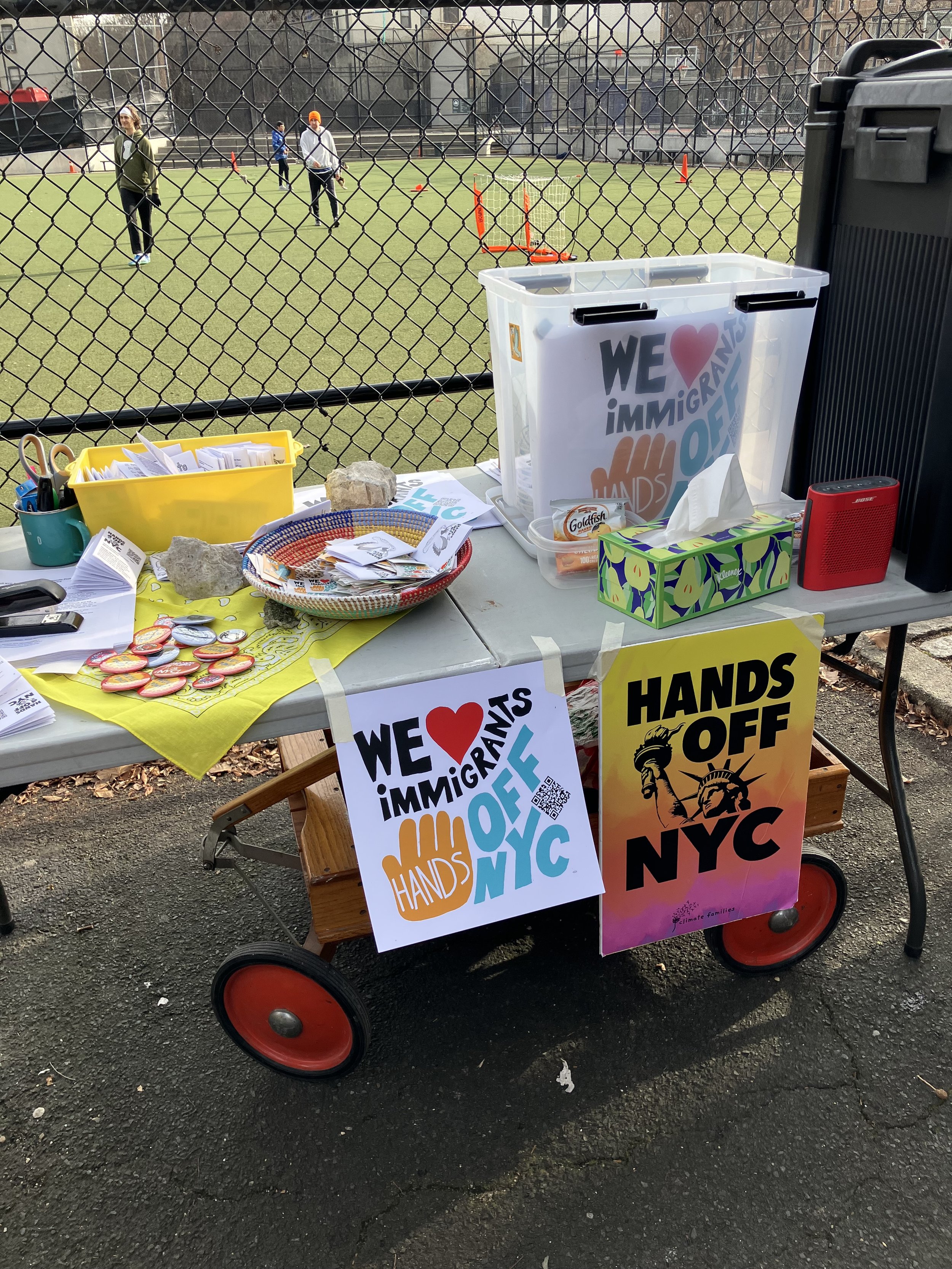 Many of the resources are printable PDFs in our folders. Hands Off NYC also occasionally hosts official “weekends of action” and during those they will have distribution sites for materials, whistles, etc. Hands Off NYC Families in particular also has a small amount of funds to support people doing this work, so please reach out if you need help.